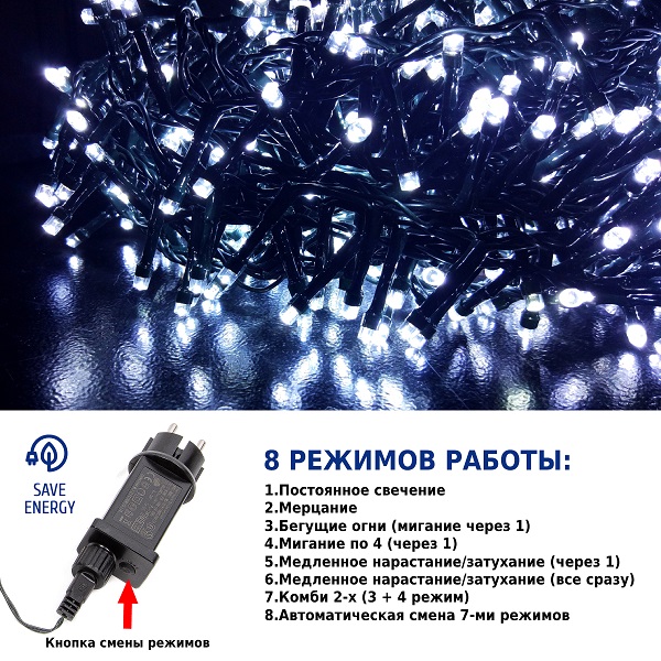 • Цвет лaмпочек: холодный белый LED