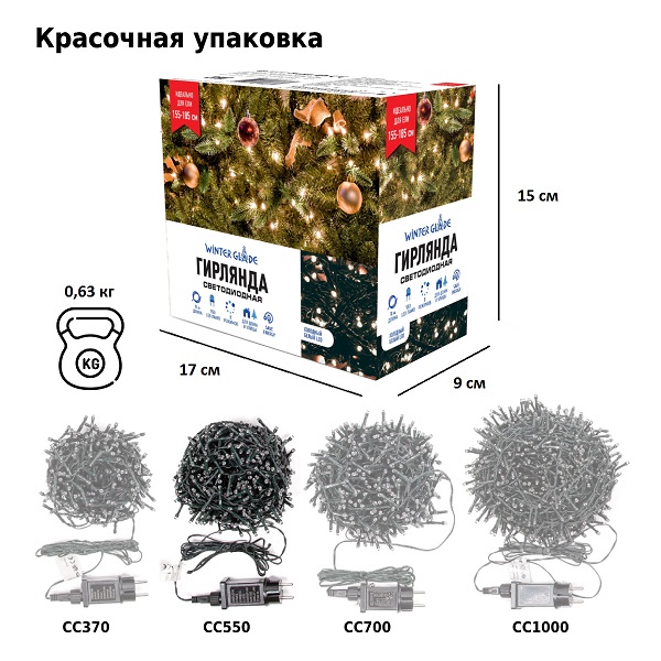 Электрическая гирлянда Winter Glade станет замечательным украшением дома в период новогодних и рождественских праздников. Ее можно расположить на елочке, предметах мебели или закрепить на стенах комнаты. Мерцающий свет лампочек подарит сказочное праздничное настроение.
