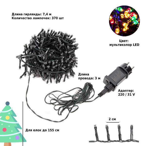 • Количество лампочек: 370 штук