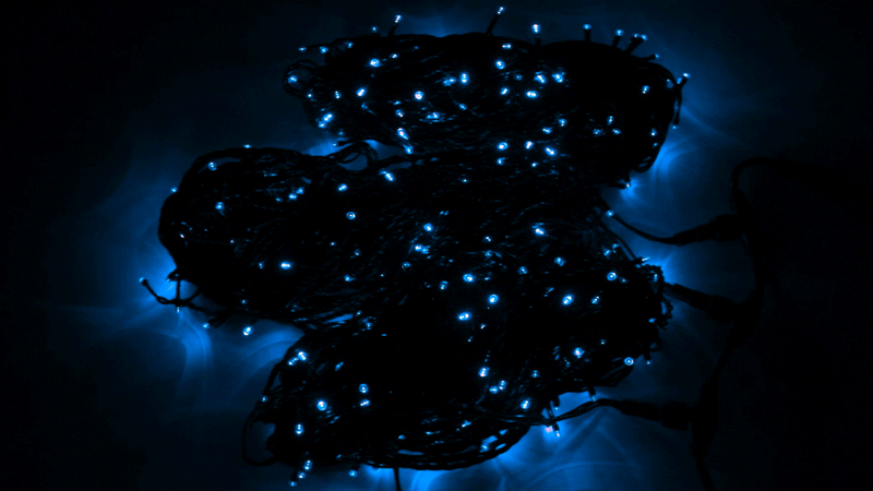Данная гирлянда состоит из 3 нитей, представлена в синем цвете свечения светодиодов.