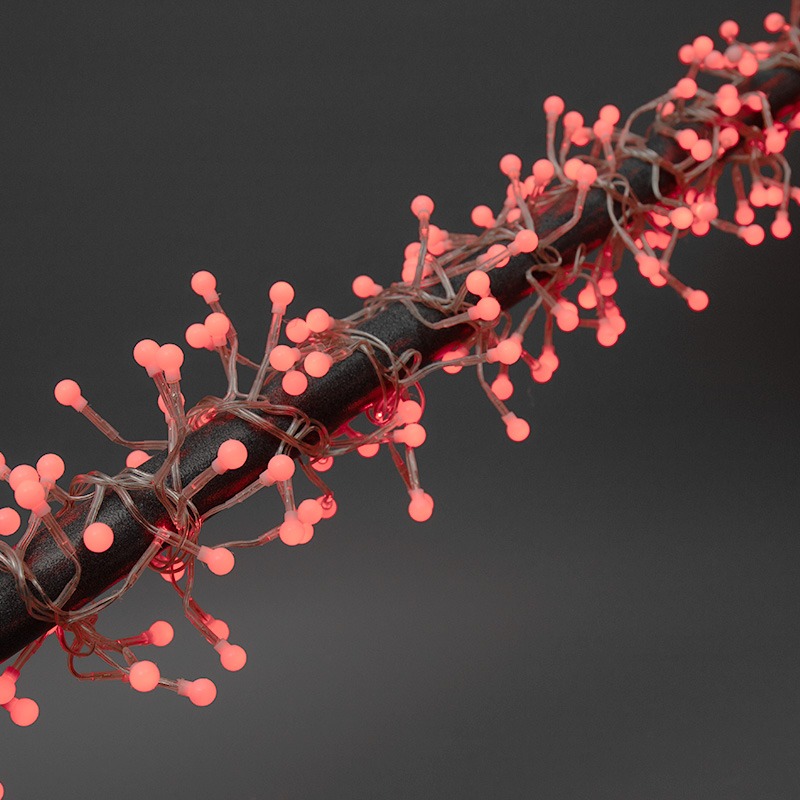 Гирлянда «Мишура» длиной 3 метра с 228 диодами, светящимися яркими красными огнями, выполнена в виде пушистой мишуры. Шарики диаметром 1 см находятся на концах светодиодов, расположенных на кабеле из прозрачного ПВХ. Украшение подходит для оформления как натуральных, так и искусственных елей: светодиоды не нагреваются. Гирлянда с защитой IP20 подходит для использования в интерьере и сухих отапливаемых помещениях. Контроллер с 8 режимами позволяет менять динамику свечения и создавать уникальное праздничное настроение. Для подключения к электросети не потребуется удлинитель: длина питающего шнура — 3 метра. Есть возможность соединить до 20 гирлянд в единое украшение.