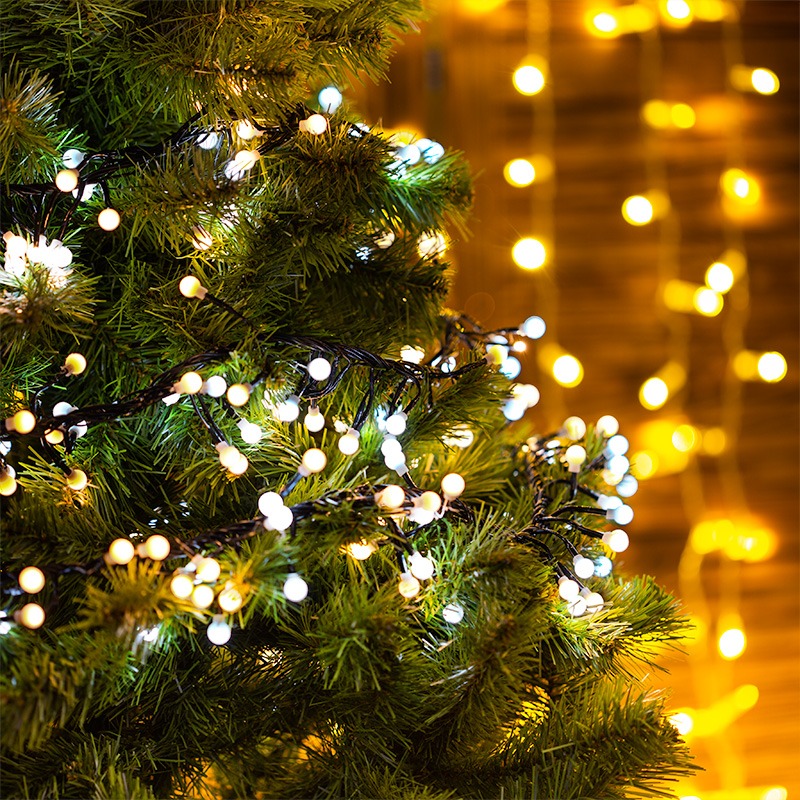 Гирлянда «Мишура» длиной 3 метра эффектно украсит новогоднюю ель, подарит ощущение праздника и волшебства, создаст уют в доме и веселое настроение гостям. 288 светодиодов, помещенных в пластиковые шарики диаметром 1 см, излучают белый свет сразу двух оттенков — теплого и холодного. Провод в изоляции из ПВХ темно-зеленого цвета отлично маскируется среди веток, оставляя на виду только россыпь золотистых и серебристых огней. Гирлянды можно соединить в одно украшение длиной до 60 метров. Контроллер имеет 8 режимов и позволяет настроить динамику и цвет свечения в соответствии с настроением. Трехметровый питающий шнур избавляет от необходимости использовать удлинитель.