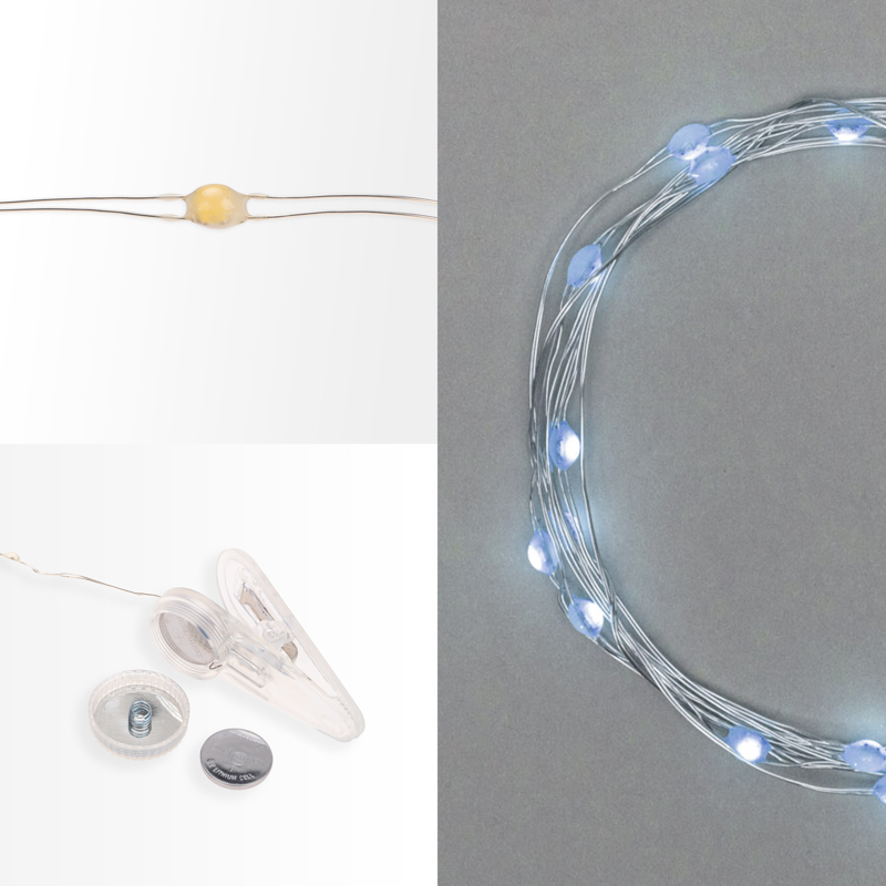 Гирлянда состоит из тонкого провода длиной 3 метра, с расположенными на нем 30 белыми долговечными светодиодами.