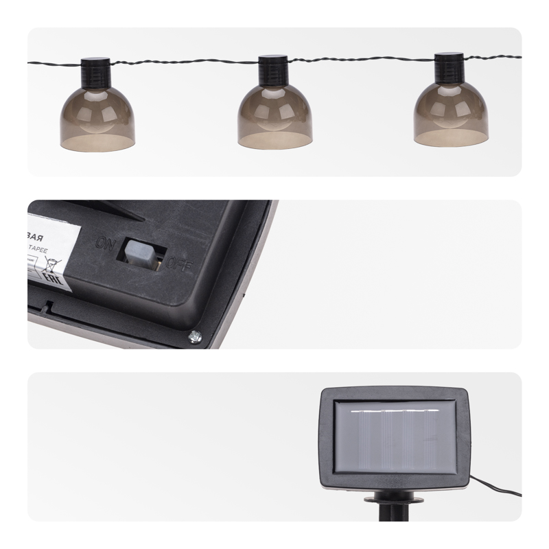 Гирлянда оснащена солнечной панелью, которая поглощает солнечные лучи в течение дня и преобразует их в электрическую энергию.