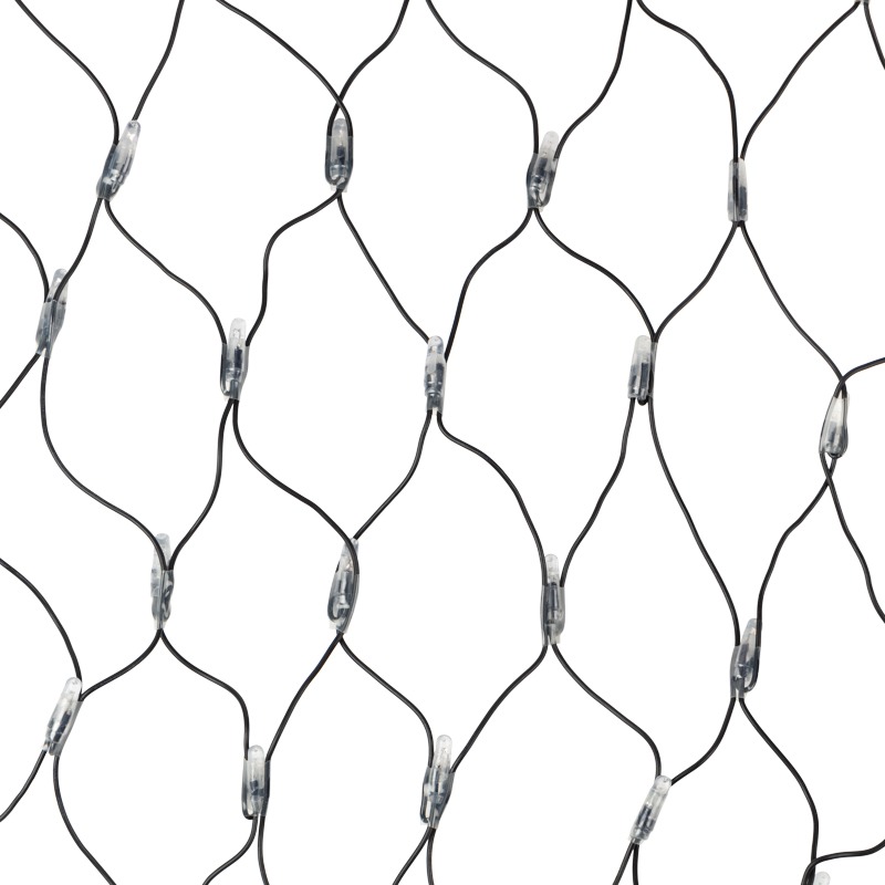 Гирлянда-сеть представляет из себя конструкцию в виде прямоугольника размером 2*1,5 метра, разбитого на равные ромбы, в углах которых находятся диоды красного и синего цвета, причем диоды чередуются по линии. Гирлянда имеет степень влагозащиты IP44 и ПВХ провод черного цвета, что позволит вам быстро и выгодно решить вопрос с декоративным украшением любых объектов как внутри помещения, так и снаружи. В комплекте идет контроллер с 8 режимами свечения, что позволяет гирлянде работать в динамике. Данная гирлянда используется для украшения фасадов и потолков зданий практически любой площади, отлично подходит для украшения небольших кустов, растяжки между направляющими в беседке или веранде, ей можно легко и быстро обмотать колонны или столбы, служит красивым декором окон зданий. Гирлянда-сеть имеет самое лучшее отношение цены к площади декорирования относительно других гирлянд, что делает ее уникальной в своем роде.