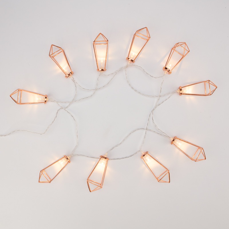 Светодиодная гирлянда «Кристаллы» длиной 1,5 метра — оригинальный, безопасный световой декор, созданный, чтобы притягивать внимание к яркому уникальному стилю вашего дома. Насадки в виде бронзовых кристаллов расположены на проводе, защищенном изоляционным слоем из прозрачного ПВХ. 10 диодов излучают теплый белый свет и мягко подсвечивают декоративные элементы. Гирлянда не нуждается в розетке: питается от собственного блока с 2 батарейками типа АА, что делает изделие мобильным и абсолютно безопасным даже для маленьких детей.