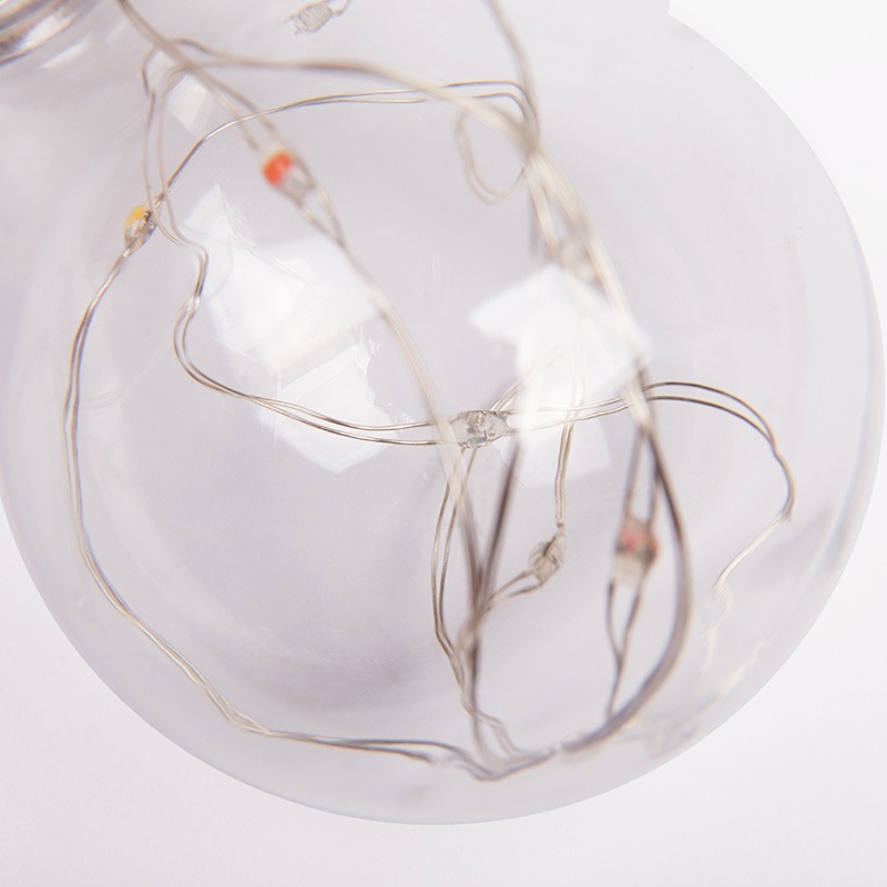 Гирлянда «Ретро-лампы» длиной 3 метра — необычное, стильное интерьерное украшение, которое разнообразит обстановку не только в новогодние праздники, но и в будни. Изделие представляет собой гибкий шнур, на котором находятся 100 диодов, светящихся разноцветными огнями. Дополнительно на кабеле расположены 10 насадок в виде аутентичных ламп накаливания с серебристым цоколем, эффектно подсвечиваемые диодами изнутри. Гирлянда не нуждается в подключении к стандартной электросети: питается от 3 батареек типа АА, что говорит об абсолютной безопасности использования.