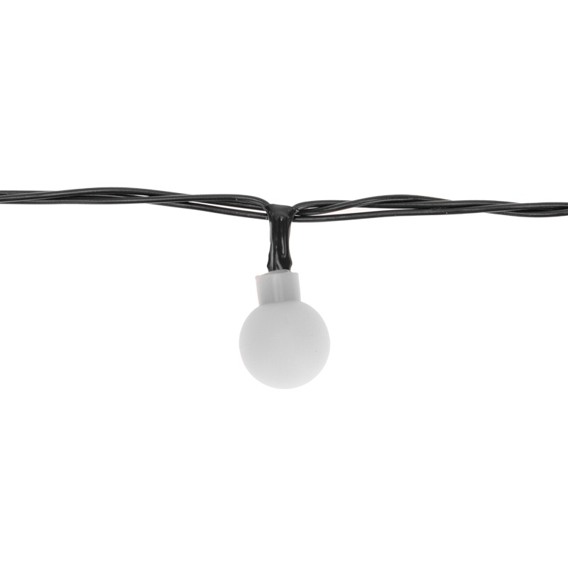 Светодиодная гирлянда Шарики длиной 5 метров выполнена в виде прозрачного ПВХ шнура с матовыми круглыми насадками, которые светятся разными цветами. Всего в гирлянде 20 светодиодов. <br> Экономичные светодиоды не перегорают со временем и не нагреваются, поэтому украшение будет долгое время радовать своих обладателей. <br> Изделие предполагает размещение внутри сухих отапливаемых помещений. Гирлянда питается от электросети с напряжением до 230 Вольт.