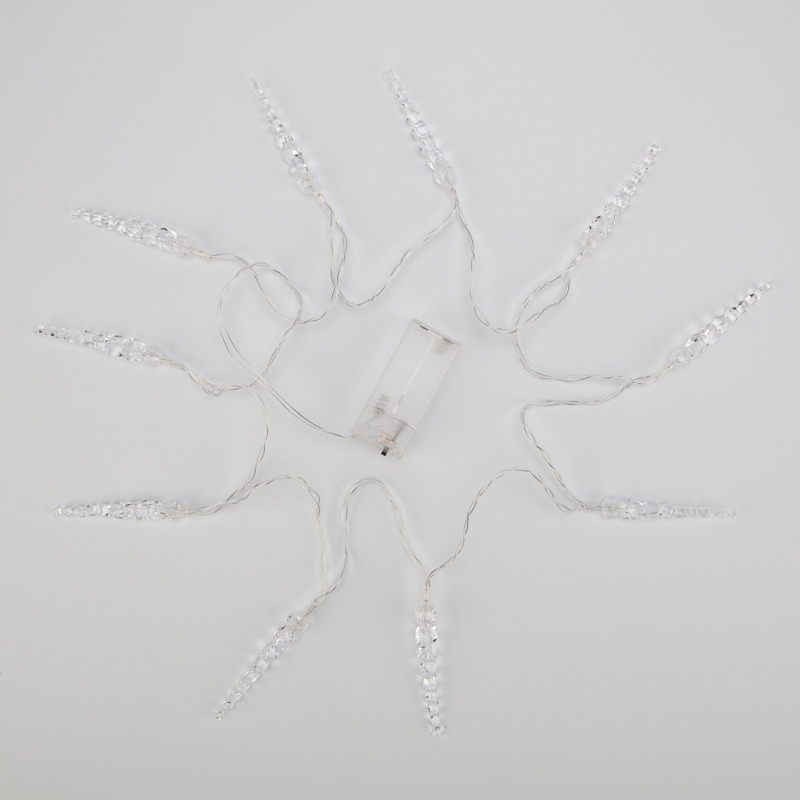 Светодиодная гирлянда «Сосульки» длиной 1,5 метра — идеальное решение для создания праздничного декора в преддверии Нового года. 10 насадок в виде сосулек ярко подсвечиваются диодами, которые излучают теплый белый свет. Необычный дизайн, тематическое исполнение, независимость от электрической сети и абсолютная безопасность открывают большие возможности в оформлении интерьера. Гирлянда питается от двух элементов типа АА, для которых предусмотрен отдельный блок с крышкой и клавишей ON/OFF. Изделие IP20 предназначено для использования дома, в офисе, магазине и других помещениях со стандартными условиями.
