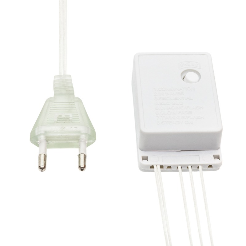 Гирлянда «Дождь» выполнена в виде светового занавеса и является отличным решением для создания эффектного светового декора в помещениях с высокими потолками. Украшение представляет собой гибкий горизонтальный провод-основу, на котором на равных промежутках расположены длинные нити со светодиодами. Всего в конструкции 240 диодов, излучающих теплый белый свет. Шнур защищен от повреждений изоляционной оболочкой из прозрачного ПВХ. Гирлянда имеет степень защиты IP20 и предназначена для использования в интерьере и сухих помещениях с умеренной влажностью. Отличительное преимущество интерьерных гирлянд: длина шнура питания 3 метра – этого достаточно, чтобы подключить изделие к розетке в любом удобном месте без использования удлинителей.