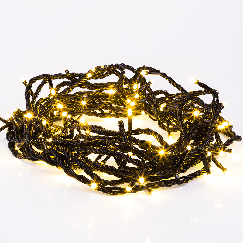 Степень влагозащиты IP65 и ПВХ-провод обеспечивают возможность использования гирлянды на открытом воздухе.