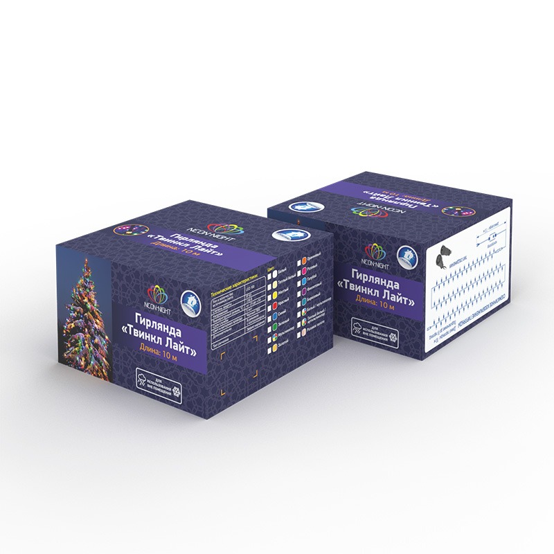 Гирлянду «Твинкл лайт» представляет собой общий провод с последовательно расположенными коротенькими отводами, направленными в разные стороны. На концах этих «отростков» расположены яркие светодиоды. Для создания праздничной светодинамики в общий провод встроен многопрограммный контроллер, который позволяет управлять 8 режимами свечения. Гирлянду «Твинкл лайт» создали в расчете на использование в качестве елочного украшения, в ее семейство входят самые разные гирлянды. Они различаются длиной, цветом и количеством светодиодов. Уличные гирлянды «Твинкл лайт» выпускаются длиной от 6 до 20 метров. Они прекрасно защищены от влаги, что делает их очень практичными. Светодиодные гирлянды имеют бесспорное преимущество перед ламповыми. Ресурс светодиодов составляет 100 000 ч. Благодаря малому энергопотреблению, рекордному ресурсу, высокой яркости, разнообразию и насыщенности цветов свечения они стали весьма привлекательным для потребителей. «Твинкл лайт» используют в качестве елочной гирлянды для украшения как уличных, так и домашних елей. Также гирлянда широко применяется для оформления различных витрин, окон, колонн, элементов интерьера и разнообразных экспозиций.