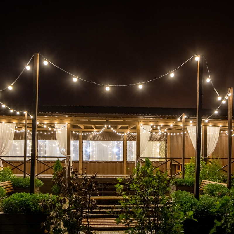 Уличная гирлянда «Лофт» выполнена на основе гирлянды «Белт-Лайт» и представляет собой готовый к использованию комплект с уже установленными в патроны матовыми светодиодными лампами. Выполнена из электрического провода длиной 10 метров, заключенного в изоляционную оболочку из морозостойкого, гибкого, прочного каучука черного цвета. Гирлянда имеет защиту по стандарту IP44 – не боится попадания водных брызг, поэтому подходит для размещения как дома, так и на улице. Диапазон рабочих температур –25...+40 °С.