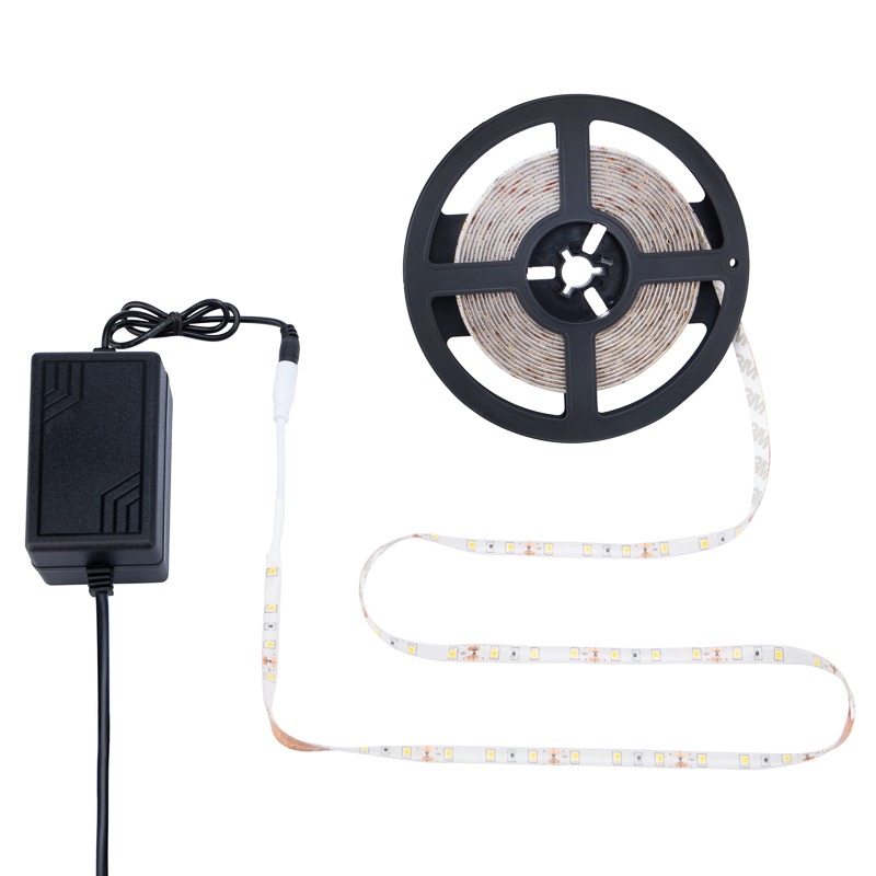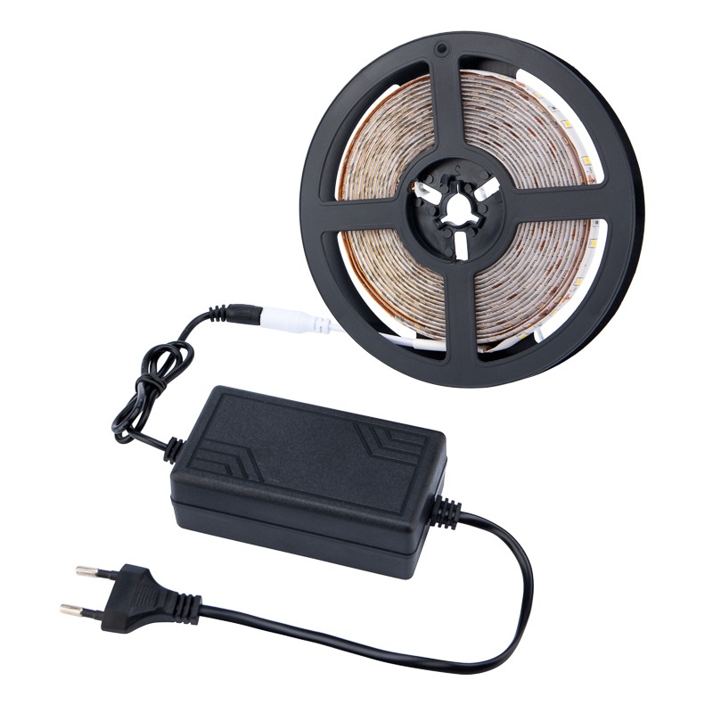 Готовый комплект светодиодной ленты с блоком питания, преобразующим напряжение – это универсальное решение для освещения и подсветки самых различных поверхностей: мебели, кухни, разделочной поверхности, зоны рабочего стола, а также прикроватной зоны. <br> Благодаря гибкости и прочности ленты, он отлично подходит для дизайнерской подсветки отдельных зон или объектов.<br> Данный комплект может использоваться в помещении и для уличного освещения.<br> <br> Технические характеристики ленты:<br> Количество светодиодов на 1 м: 60<br> Длина ленты: 5 м<br> Напряжение питания: 12 В<br> Срок службы: 50 000 час<br> Температурные ограничения хранения и перевозки: -10…+40 ⁰С<br> Тип светодиодов: SMD2835<br> AC: 230 В 50 Гц<br> Класс защиты от поражения электрическим током: III<br> Степень пылевлагозащиты: IP65<br> Температура свечения: 3000 К<br> <br> Технические характеристики блока питания:<br> Степень пылевлагозащиты: IP20<br> Номинальное ток: 2 А<br> Номинальная мощность: 24 Вт