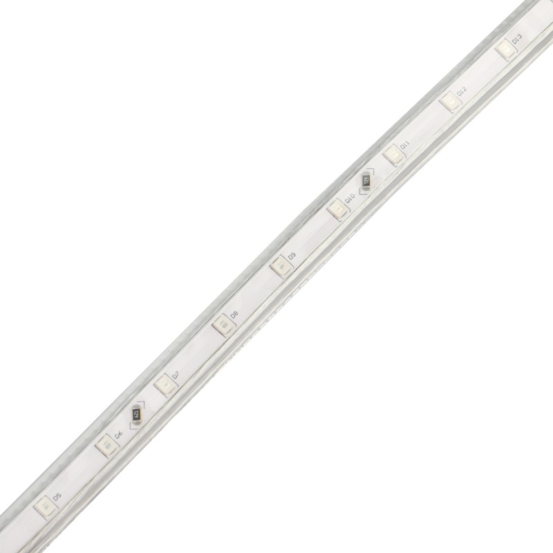 Светодиодная лента 220 В представляет собой гибкую PCB панель, напоминающую тончайшую ленту, на которую нанесены светодиоды. PCB панель со всех сторон обволакивает прозрачная герметичная изоляция, благодаря которой лента защищена от механических повреждений и может работать находясь под тяжелым воздействием окружающей среды.