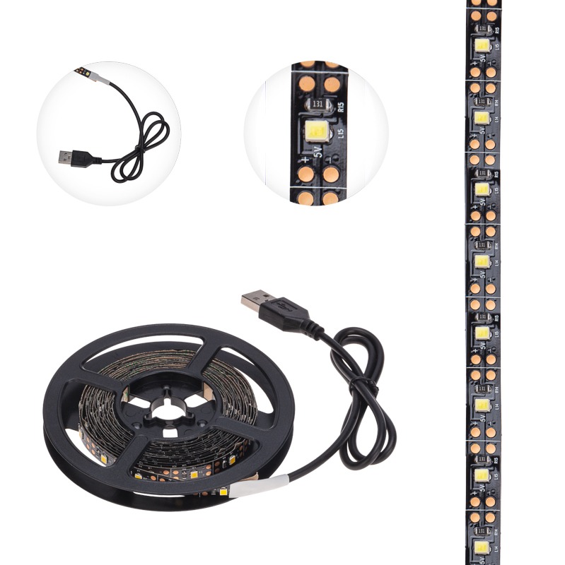 Напряжение питания: 5 В<br> Цвет свечения: Теплый белый<br> Мощность: 4,8 Вт/м<br> Длина: 2 м<br> Цветовая температура: 2700 К<br> Количество диодов на метр: 60 шт.<br> Световой поток: 6 Лм/диод.<br> Тип диодов: SMD 2835<br> Степень защиты: IP20