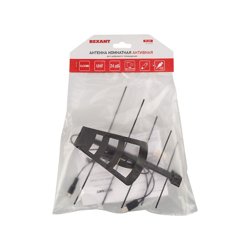 Антенна комнатная «Активная» с USB питанием, для цифрового телевидения DVB-T2, RX-269 REXANT