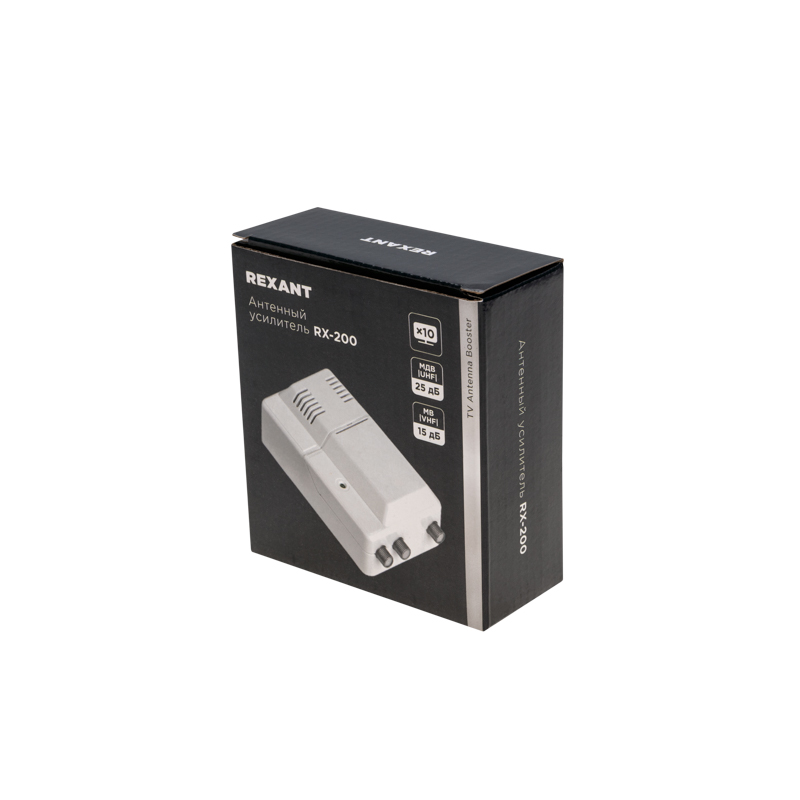 Антенный усилитель RX-200 предназначен для усиления цифрового эфирного сигнала в стандарте DVB-T2 в диапазоне частот 47…862 МГц. Позволяет развести ТВ сигнал, принимаемый от одной антенны, на 2 выхода, к которым можно подключить два DVB-T2 приемника/два телевизора.