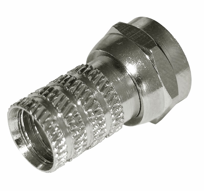 РАЗЪЕМ F-разъем RG-58 PROconnect предназначен для соединения коаксиального кабеля волновым сопротивлением 50 Ом с телевизионным и видеооборудованием (ресиверы, телевизоры, всевозможная видеоаппаратура и т.д.). Разъем данного вида не имеет непосредственного штекера, поэтому роль штекера выполняет центральная жила кабеля, что позволяет избежать дополнительных потерь сигнала. F-коннектор изготовлен из никелированного металла. Разъем устанавливается на кабель методом накрутки гильзы разъема на внешнюю оболочку кабеля, после соответствующей зачистки контактов, и не требует применения каких-либо специальных инструментов. F-штекер выступает в роли своеобразного экрана за счет накручивания на оплетку кабеля для выполнения роли электрического контакта. Такой высокочастотный соединитель имеет ряд положительных преимуществ: