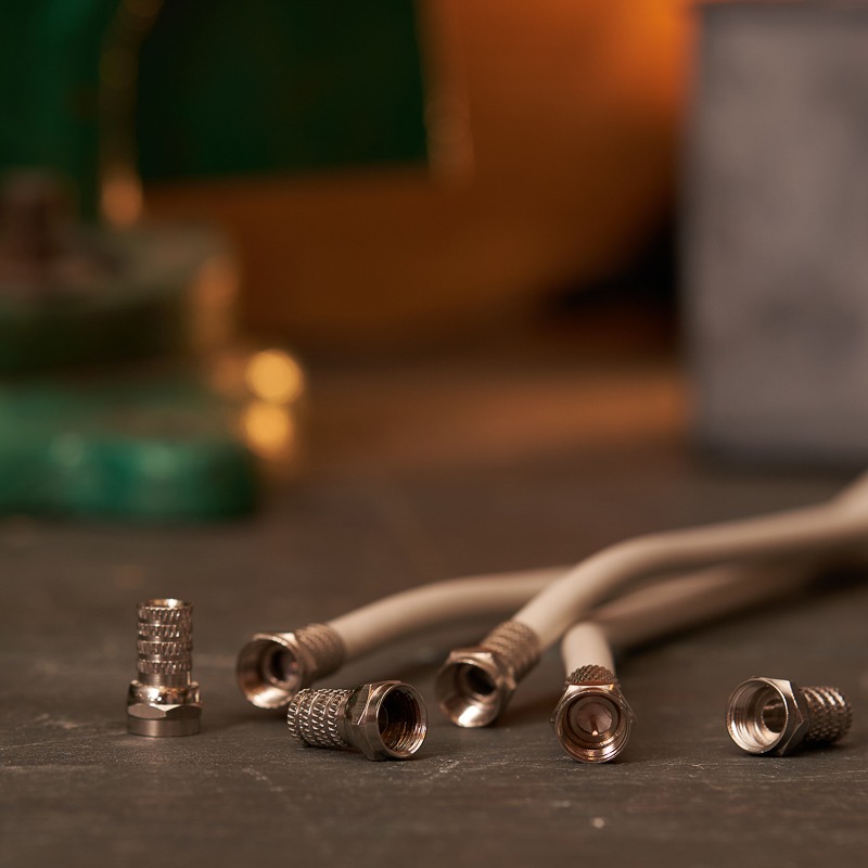 Резьбовой F-разъем RG-6 REXANT используется при подключении видеосистем, кабельного и эфирного телевидения. Предназначен для соединения коаксиального кабеля с телевизионным и видеооборудованием: ресиверы, телевизоры, всевозможная видеоаппаратура и т. д. Коннектор данного вида не имеет собственного штекера, его роль выполняет центральная жила кабеля: это позволяет избежать дополнительных потерь сигнала. F-разъем изготовлен из никелированного сплава меди (биметалл). Коннектор RG-6 устанавливается вручную методом накрутки гильзы разъема на внешнюю оболочку кабеля после соответствующей зачистки контактов. Не требует применения специальных инструментов. F-штекер выступает в роли электрического контакта и экрана.
