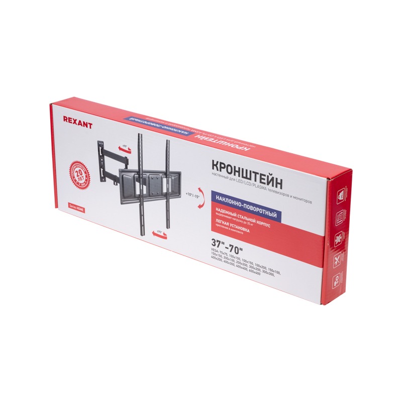 Кронштейн для телевизора 37"-70", наклонно-поворотный 2 колена REXANT серия Home.