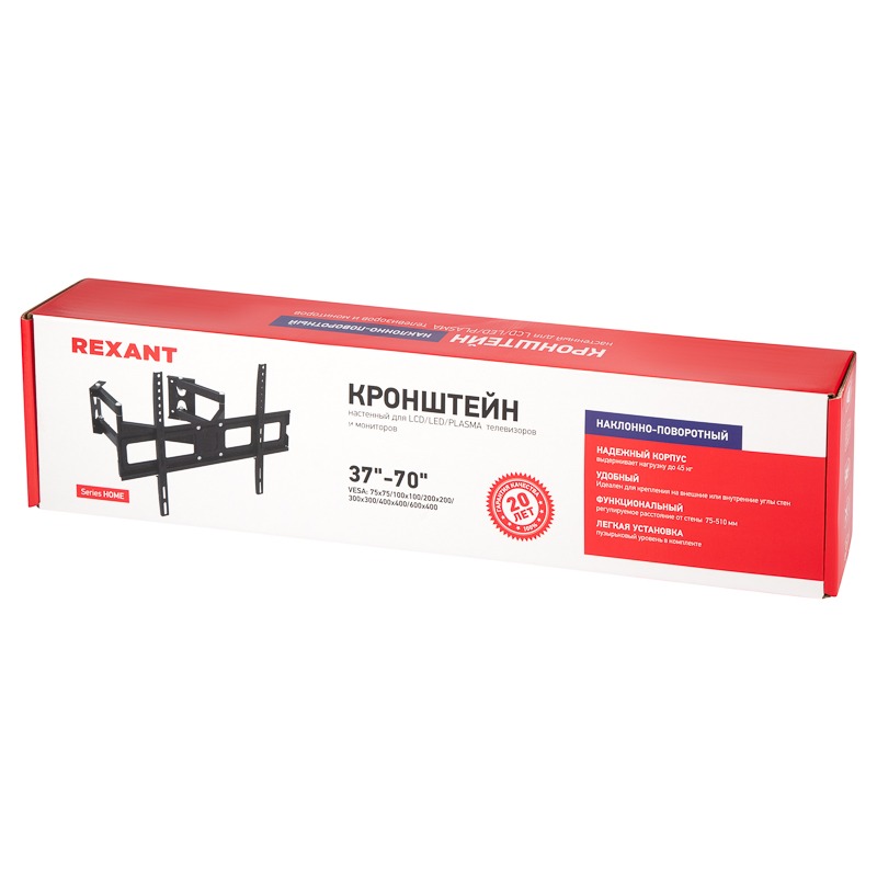Кронштейн для телевизора 37"-70", наклонно-поворотный, два двойных колена раздельно, серия HOME REXANT