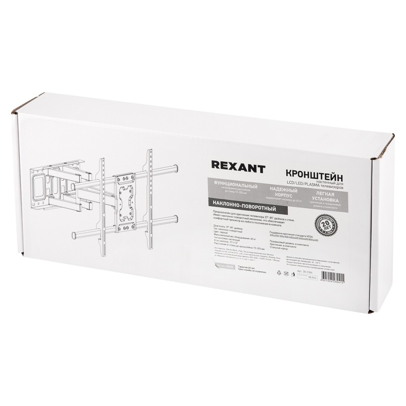 Кронштейн на стену для телевизора диагональю: 37"-85" дюймов, наклонно-поворотный с двойным коленом REXANT серия HOME