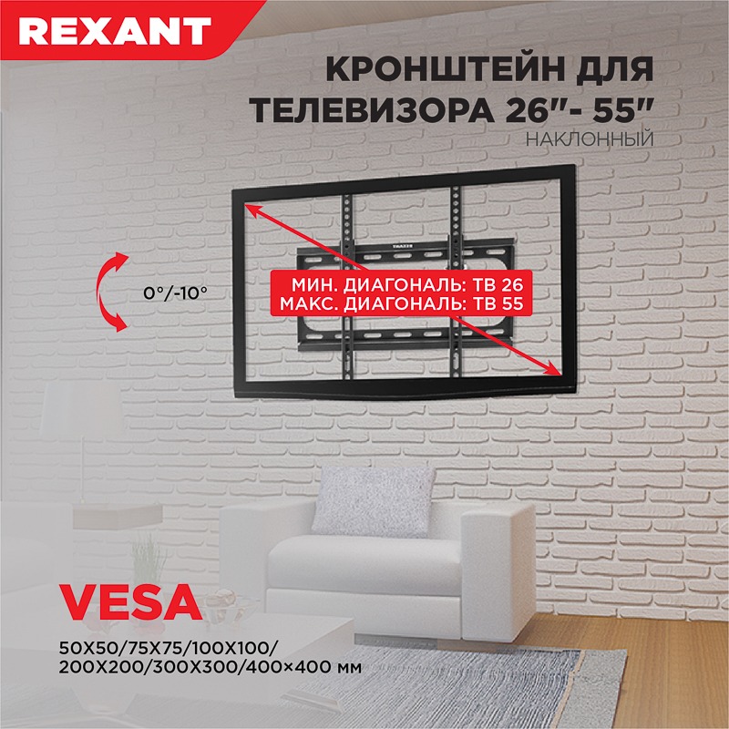 Кронштейн наклонный для телевизора и монитора 26"- 55" REXANT