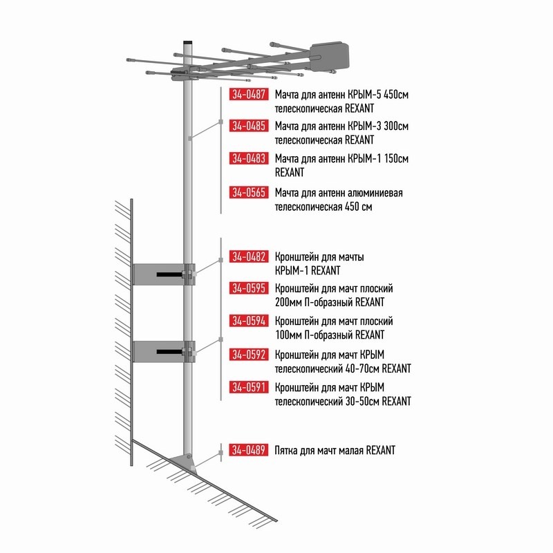Мачта для антенн телескопическая, алюминиевая, 450см REXANT