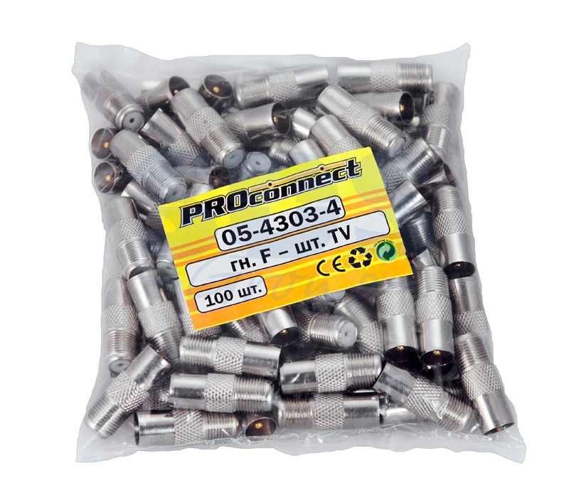 ПЕРЕХОД гнездо F - штекер TV PROconnect предназначен для подключения эфирного, спутникового и кабельного телевидения с помощью радиочастотного кабеля волновым сопротивлением 50 или 75 Ом. С одной стороны располагается гнездо F-разъема, а с другой штекер ТВ-разъема. Изготовлен переход из никелированного сплава первичной меди (биметалл), что гарантирует минимальный уровень потерь при прохождении сигнала. Переход соединяется с кабелем методом накрутки F-коннектора, после соответствующей зачистки контактов радиочастотного кабеля, не требуя в ходе монтажа применения каких-либо специальных инструментов. Такой высокочастотный соединитель имеет ряд положительных преимуществ: