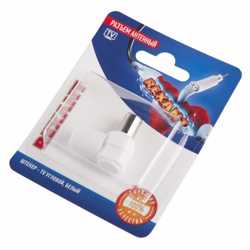Разъем антенный на кабель, (штекер-TV угловой), белый, (1шт) REXANT