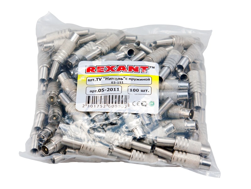 Никелированный разъем REXANT штекер TV с пружиной предназначен для подключения эфирного, спутникового и кабельного телевидения с помощью радиочастотного кабеля.