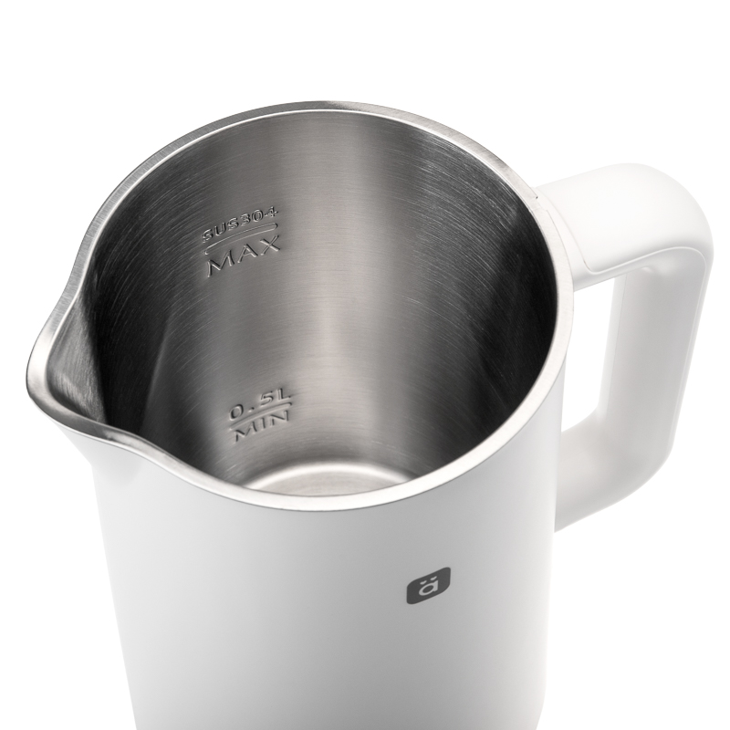 Устройство изготовлено из нержавеющей стали и пищевого пластика. Материалы легко отмываются от накипи и не выделяют вредных веществ при кипячении.
