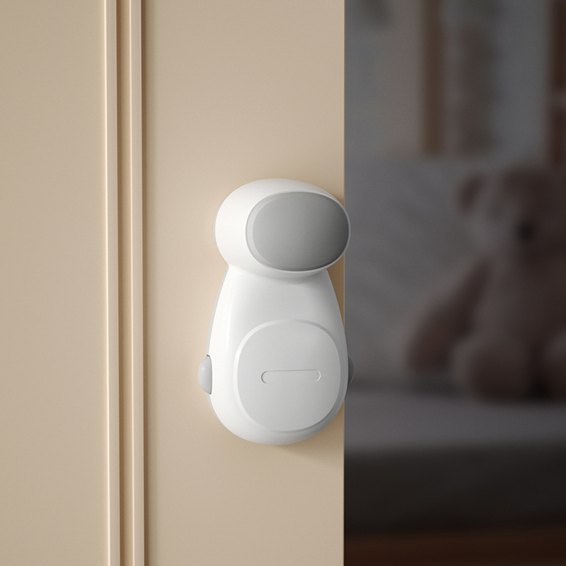 Устройство имеет простую конструкцию, которая легко крепится на дверную раму при помощи липкой ленты 3M. Автоматически поворачивается на 90° вправо при открытии двери и препятствует ее полному закрытию.