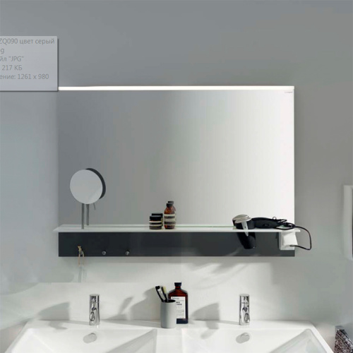 BURGBAD Eqio Зеркало с полкой , светодиод подсв.900х769х150 мм,выкл сбоку справа, 3 крючка, держ для фена справа. цвет серый F2010 (спЦЕНА со склада!)