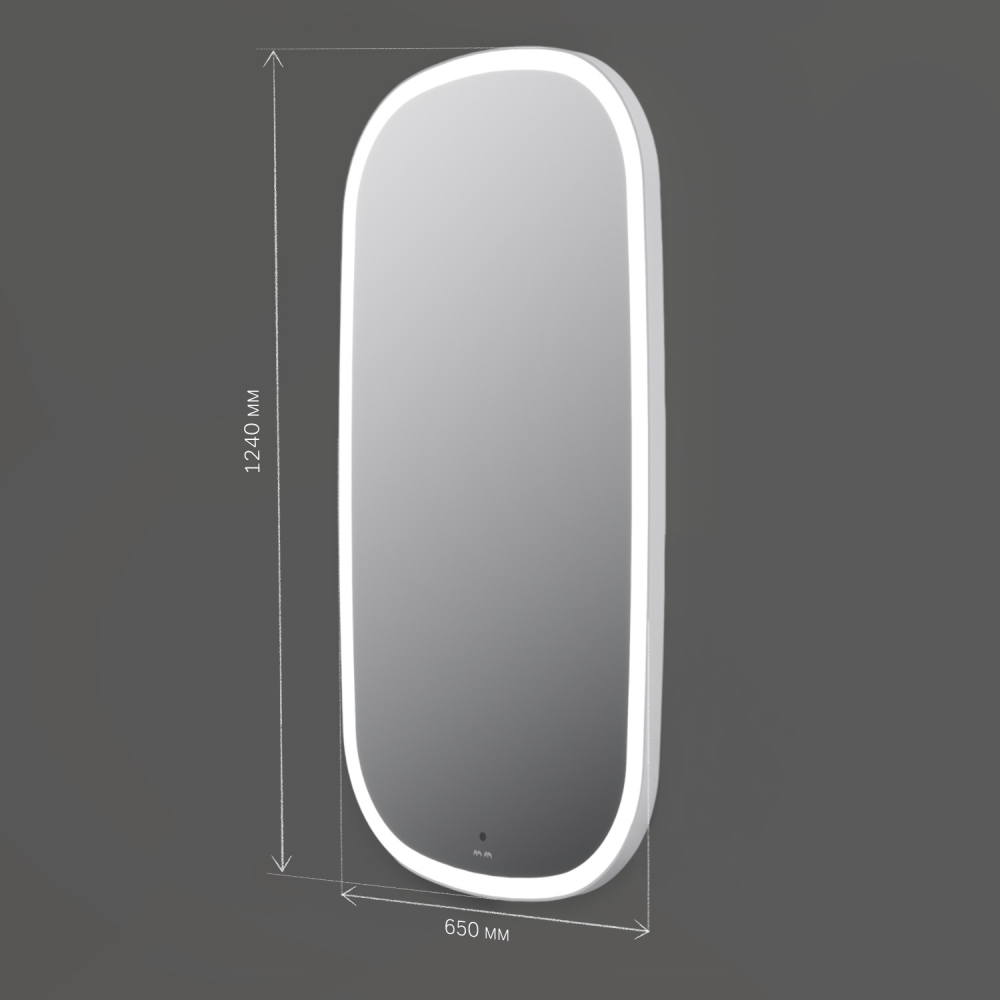 В качестве элемента LED-подсветки используется светодиодная лента которая создает мягкое и равномерное свечение по периметру всего зеркала. Управление подсветкой осуществляется при помощи бесконтактного сенсора. Сенсор нового поколения позволяет управлять включением/выключением и яркостью LED-подсветки без касания зеркального полотна. Зеркало дольше остается чистым. Зеркало поставляется в комплекте с настенным крепежом и инструкцией. ""