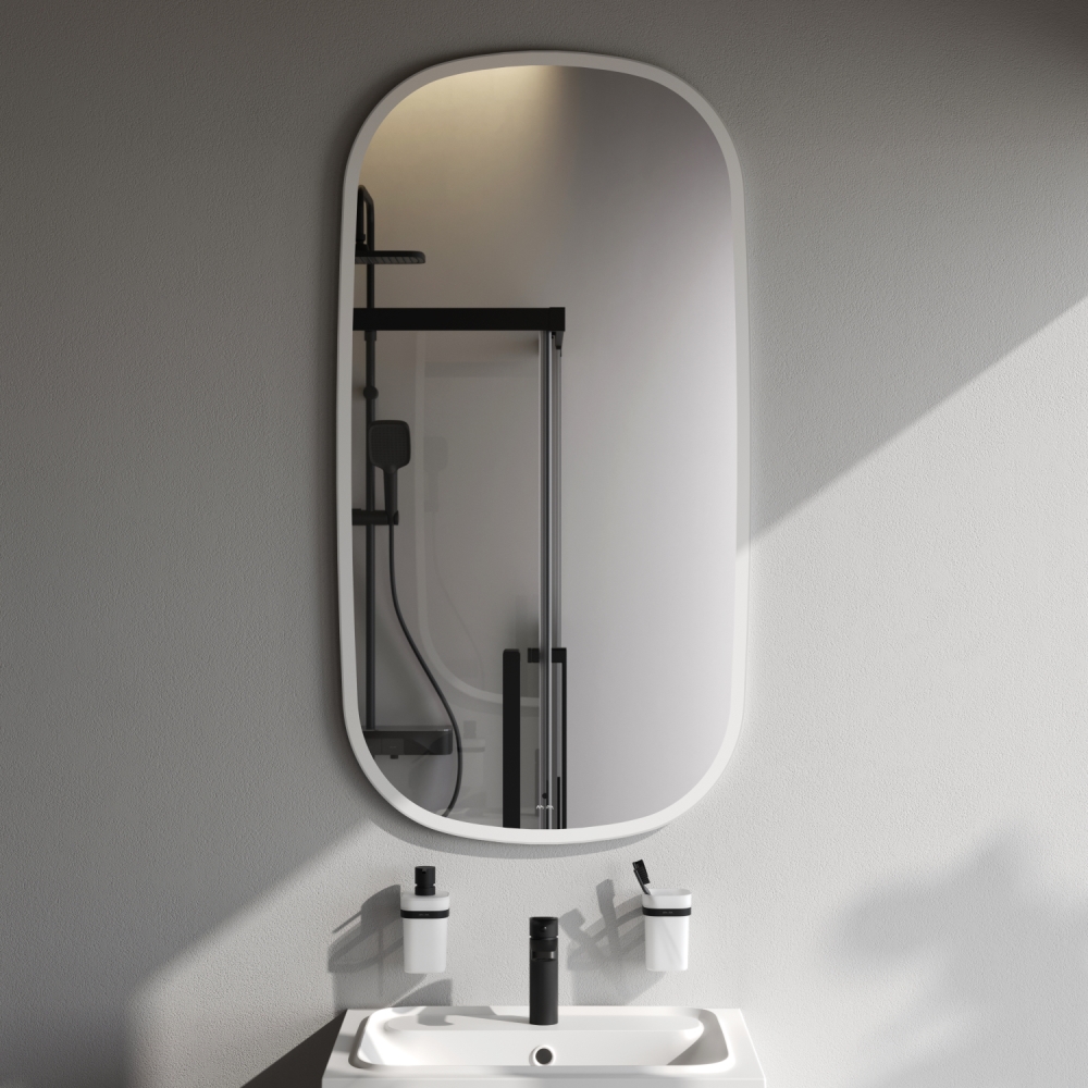 Зеркало изготовлено из зеркального полотна от ведущего европейского производителя зеркал AGC. Изделие имеет высокую степень защиты от попадания капель воды брызг. Край зеркального полотна обработан еврокромкой что обеспечивает надежную защиту от случайных порезов при контакте с изделием.