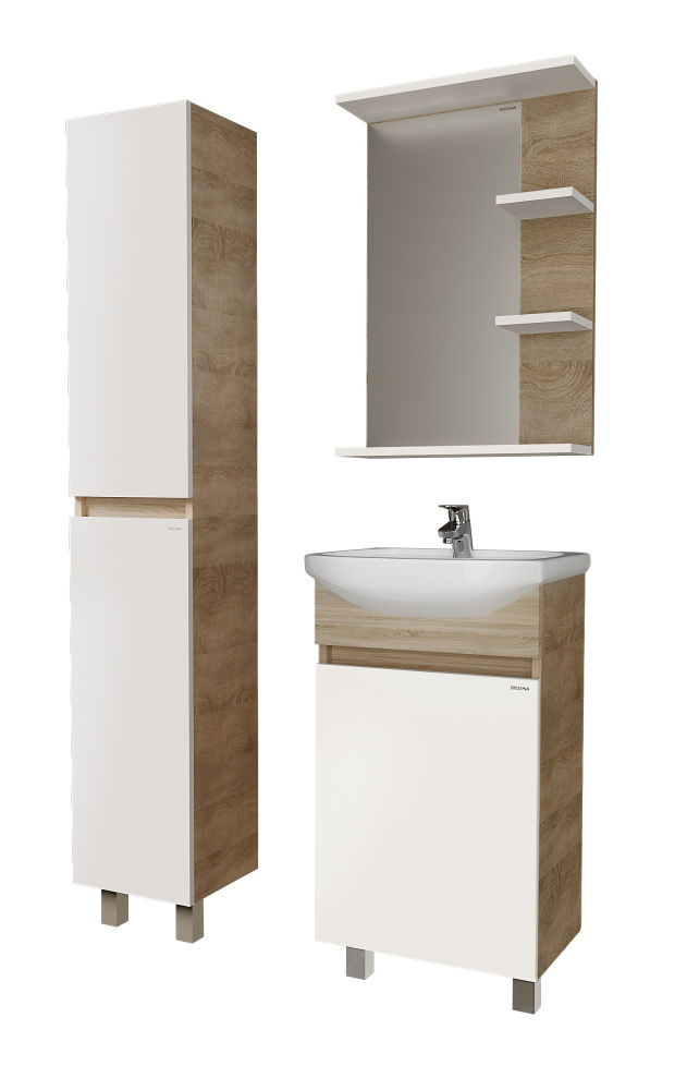 Компактные габариты позволяют грамотно организовать небольшой санузел, а сочетание структуры натурального дерева с белой глянцевой отделкой гармонично впишется в интерьер любой ванной комнаты.