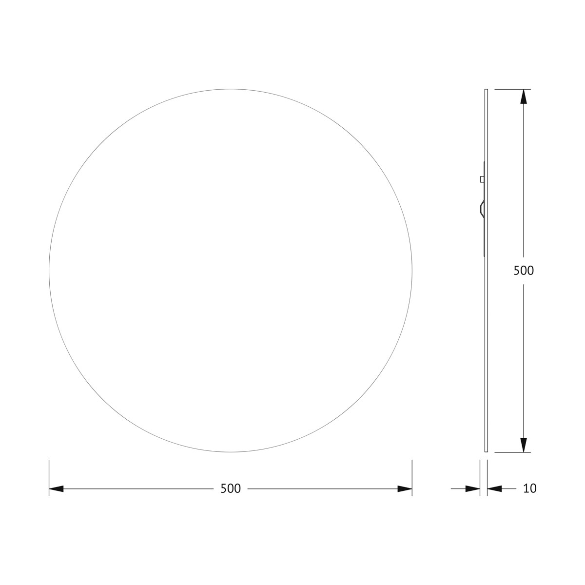 Размер зеркала составляет 50 x 50 сантиметров, что делает его идеальным для использования в ванной комнате, прихожей или спальне, а черная окантовка шириной 10 мм придает зеркалу стильный и современный вид.