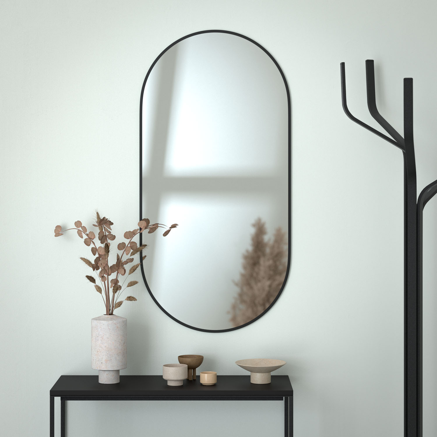 Размер зеркала составляет 60 x 120 сантиметров, что делает его идеальным для использования в ванной комнате, прихожей или спальне, а черная окантовка шириной 10 мм придает зеркалу стильный и современный вид.