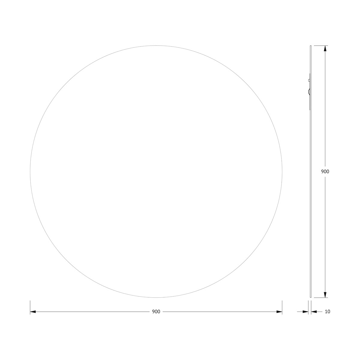 Размер зеркала составляет 90 x 90 сантиметров, что делает его идеальным для использования в ванной комнате, прихожей или спальне, а черная окантовка шириной 10 мм придает зеркалу стильный и современный вид.