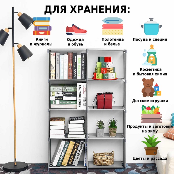 Прочный, устойчивый, вместительный и легкий в сборе напольный стеллаж-трансформер Helex Home W-14 пригодится на кухне, в коридоре, ванной, гостиной, спальне и детской комнате. На нем можно хранить книги и письменные принадлежности, полотенца и средства гигиены, посуду и специи, интерьерные украшения и детские игрушки. Также стеллаж можно использовать для хранения повседневных вещей, как обувницу или подставку для цветов и рассады.<br>