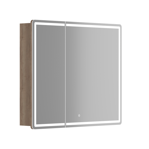 Зеркальный шкаф для ванной комнаты SANCOS Mirror 890x150х740 мм, с LED подсветкой, корпус выполнен из лдсп цвет дуб галифакс натуральный, диммируемое сенсорное управление подсветкой, 4 полки стекло, арт. MI90EG