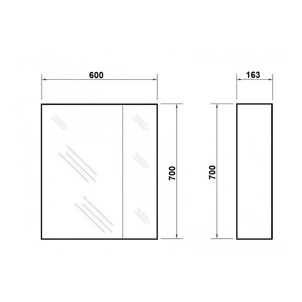 Зеркальный шкаф (две створки) левосторонний, большая дверка слева, маленькая справа.. Фасад зеркальное полотно, корпус ЛДСП - белый глянец. Дверцы с механизмом доводчика, обеспечивающим плавное закрывание. В комплекте две полки ДСП.