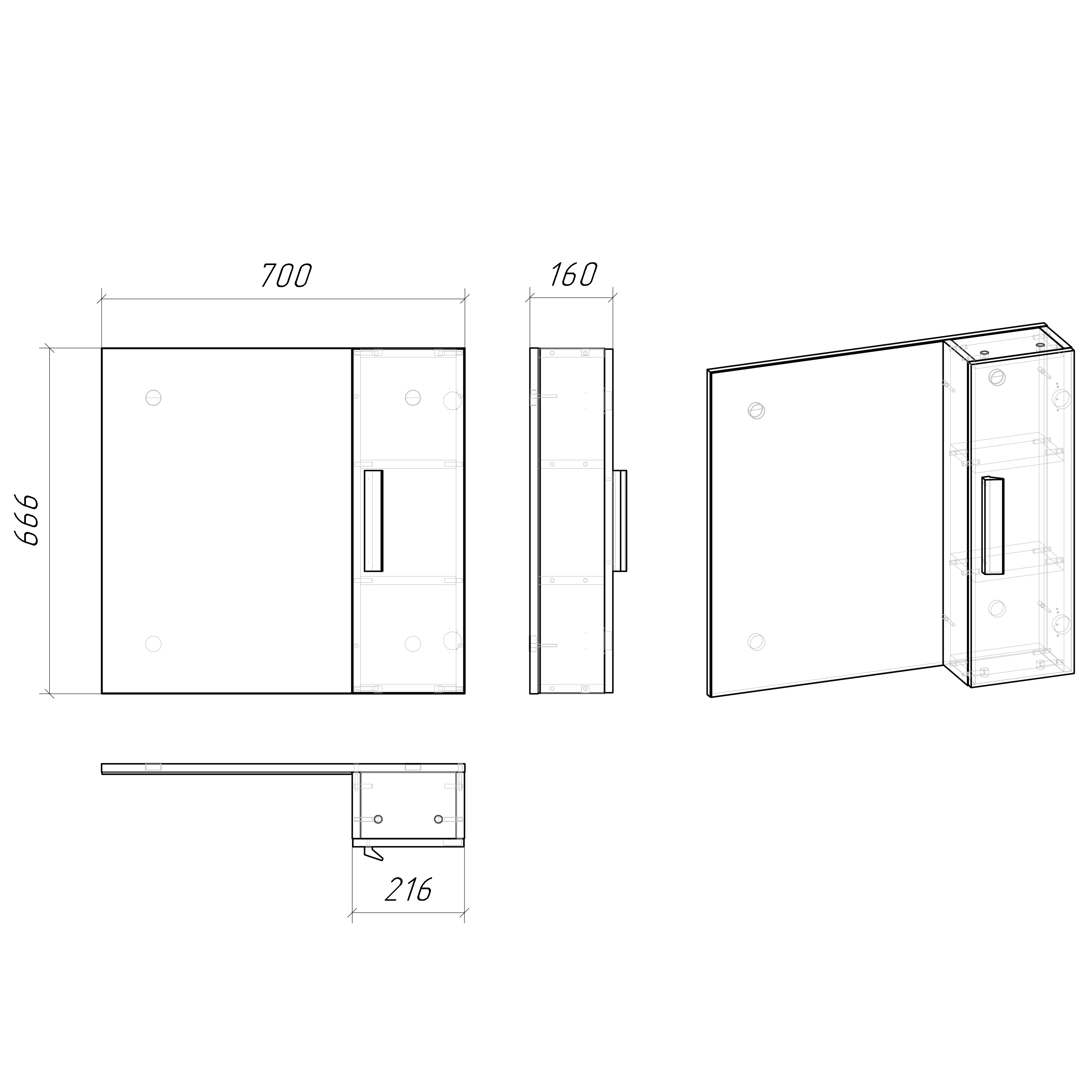 Шкаф-зеркало имеет петли с доводчиками, что обеспечивает плавное и бесшумное закрывание дверцы. Внутренние полочки также выполнены из ЛДСП.