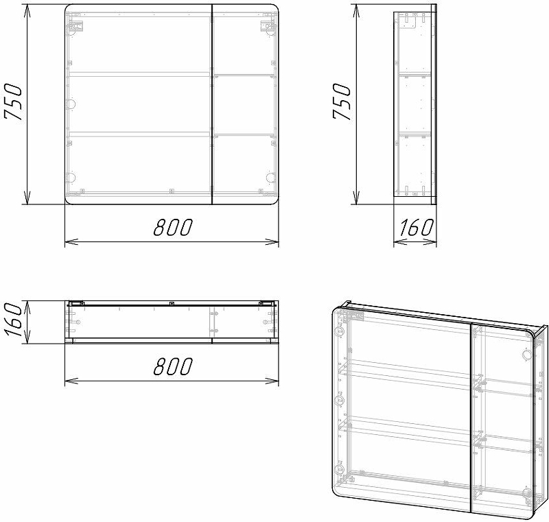 - Габариты (ШxВxГ): 800x750x160 мм.