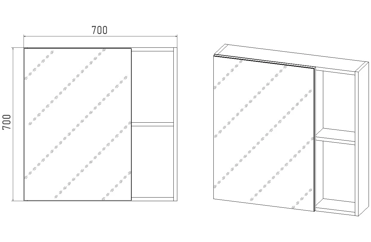 Зеркальный Шкаф VIANT "Бостон" 70 правый/левый без света 160х700х700 (VBOS70-ZSH)