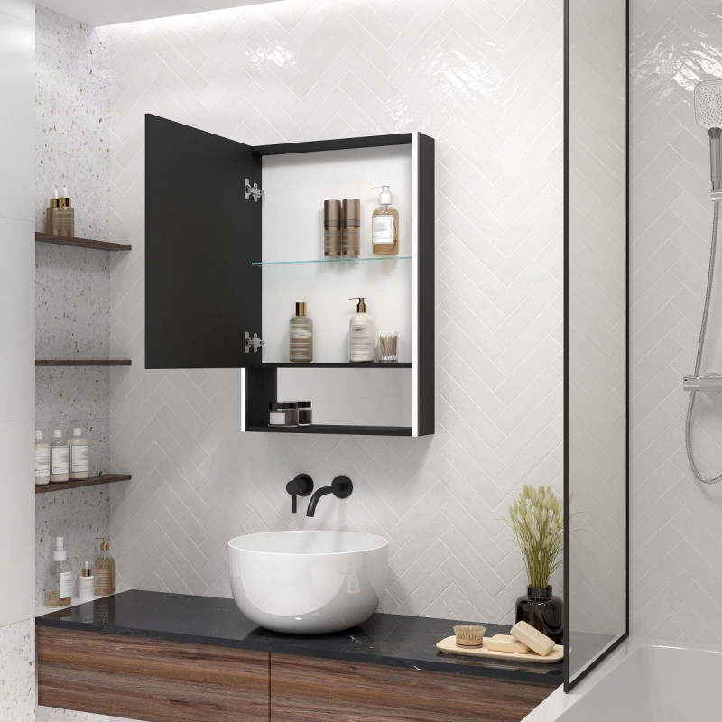 Зеркало-шкаф Art&Max Foggia 50 AM-Fog-500-800-1D-L-DS-F-Nero левый черный