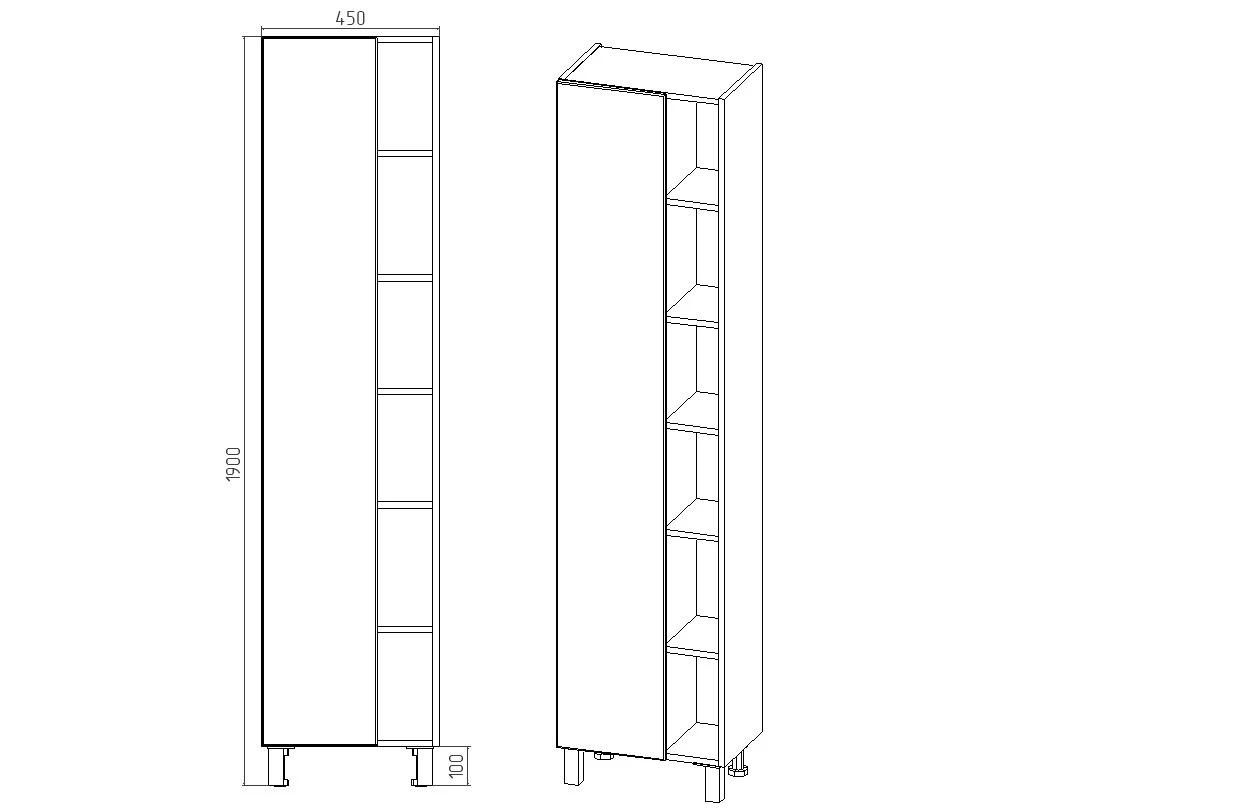 Пенал VIANT "Бостон" правый/левый графит 300х450х1900 (VBOS450G-PEN)
