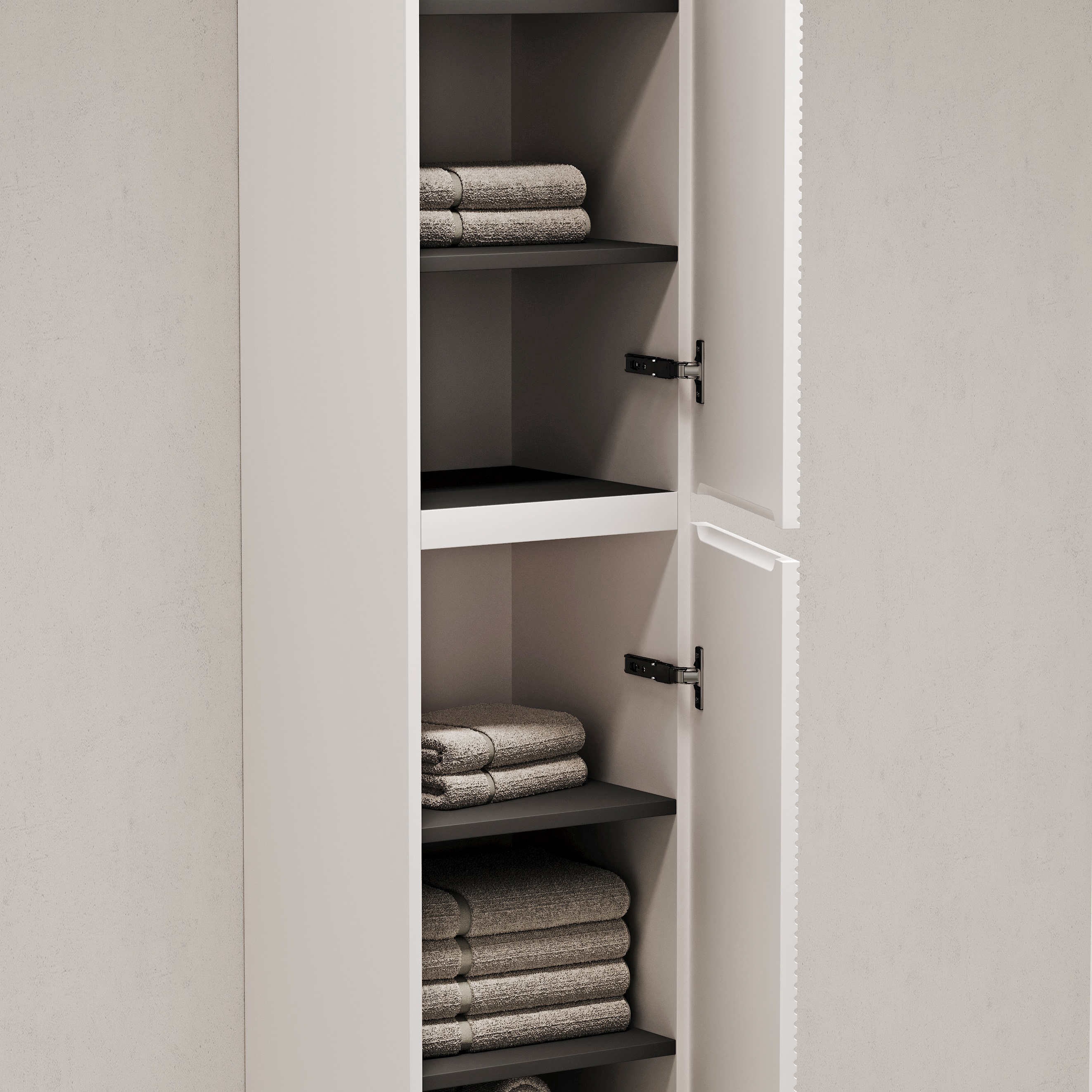 Шкаф-пенал подвесной с рельефным фасадом SANCOS Folk, две дверцы, петли с доводчиками, расположение петель R/L, 350х350х1650 мм, цвет Bianco, арт. PFL35W